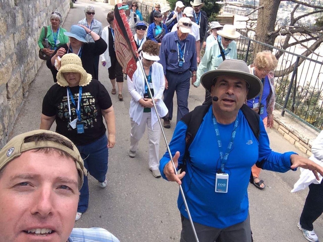 As you walk the streets of Jerusalem, stroll through the Garden Of Gethsemane, or put your feet in the Sea Of Galilee, you think “I know this place. I’ve read about it in my Bible. I’ve heard these stories since I was a kid.” It’s familiar to your faith, but foreign to your feet.” I asked Greg if I could use that, and of course he said, YES! Here’s Greg with our same Israeli tour guide, Rafi Roz; same RR flag, too!